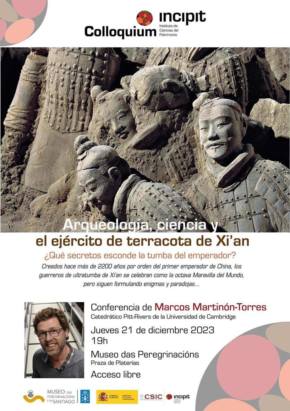 El próximo jueves 21 de diciembre, el Incipit iniciará las celebraciones de fin de año con una atractiva conferencia gran público, en el Museo das Peregrinacións e de Santiago, sobre los famosos guerreros de terracota de X’ian. Esta tercera cita de los Colloquium-Incipit nos permitirá escuchar a, e intercambiar con, Marcos Martinón-Torres, sobre su fascinante historia.Resumen de la charla: Desde su hallazgo casual hace casi cincuenta años, el ejército de terracota de Xi’an es reconocido universalmente como uno de los descubrimientos arqueológicos más deslumbrantes de todos los tiempos. Creados hace más de 2200 años por orden del primer emperador de China, los guerreros de Xi’an se celebran como la octava Maravilla del Mundo, y son protegidos por la Unesco como Patrimonio de la Humanidad. No obstante, este ejército de ultratumba sigue siendo formulando enigmas y paradojas. ¿Cuál fue la estrategia del joven Qin Shi Huang para hacerse con el poder de un imperio colosal? ¿Cómo fue posible coordinar la multitud de personas, recursos e ideas que hacen falta para crear algo tan grande y sofisticado? ¿Qué secretos esconde la tumba del emperador? ¿Qué sabemos de sus constructores? Y por encima de todo, ¿por qué? ¿Por qué el emperador se llevó un ejército de cerámica a su tumba? La arqueología, la historia y la ciencia moderna ofrecen hoy preguntas y respuestas que antes eran inconcebibles. Gracias a la colaboración de numerosos especialistas, seguimos reescribiendo el pasado y alumbrando el futuro.Bio de Marcos Martinón-Torres: es el Catedrático Pitt-Rivers de Ciencia Arqueológica en la Universidad de Cambridge, donde codirige una plataforma interdepartamental de ciencias del patrimonio financiada por el Departamento de Ciencia, Innovación y Tecnología de Reino Unido. También es coeditor del Journal of Archaeological Science. Su ámbito de especialización es la aplicación de métodos científicos al estudio de restos arqueológicos. Con proyectos activos en Europa, América, Asia y África, su equipo aúna a becarios e investigadores posdoctorales de numerosos países y con formación muy diversa. Uno de sus proyectos de colaboración más destacados se ha centrado en el estudio del ejército de terracota de Xi’an, en China. También ha investigado la alquimia renacentista en Europa, la orfebrería prehistórica en múltiples regiones, y otros metales y cerámicas, pigmentos, vidrio y ámbar, entre otros materiales. Actualmente lidera un proyecto financiado por el Consejo Europeo de Investigación (ERC) que se centra en el estudio de las tecnologías de lujo en civilizaciones sin estructura de estado. Ha recibido numerosos premios y becas de investigación, publicado más de 170 libros y artículos, ofrecido conferencias en más de 20 países, y aparecido en varios programas de televisión. Con numerosos colaboradores, ha liderado la exposición del ejército de terracota en el Museo Arqueológico de Alicante, donde seguirá abierta al público hasta enero de 2024.