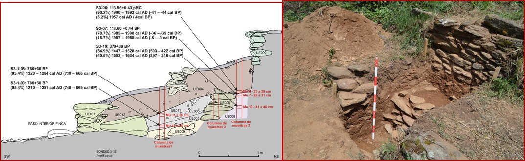 A fines de 2018, la Dir. Xeral de Patrimonio Cultural de la Consellería de Educación e Cultura de la Xunta de Galicia, planteó al Incipit estudiar la cronología de las terrazas de la Ribeira Sacra para reforzar la candidatura de esta zona de Galicia a la lista de Patrimonio de la Humanidad. El Incipit tiene una larga experiencia en estudios de arqueología agraria y en particular de paisajes aterrazados. Fue una línea desarrollada por Paula Ballesteros en su tesis doctoral.Para desarrollar este estudio, nos coordinamos con el proyecto de investigación de Os Conventos que estaba realizando Xurxo Ayán, en el Val do Frade (en Vilachá, Pobra de Brollón, Lugo). Decidimos trabajar en el entorno de terrazas de ese sitio mientras su equipo trabajaba el sitio. Sabíamos que con este efecto sinérgico podríamos generar una mejor síntesis histórica. Los datos están disponibles en la web https://adegasdamemoria.com/es/, incluyendo una serie de videos que los presentan de forma atractiva.Los estudios previos realizados en otras zonas de Galicia nos llevaban a suponer que el paisaje de terrazas de la Ribeira Sacra se podría haber construido entre el siglo VII y el X dne. Los sondeos arqueológicos y las dataciones mostraron que las primeras terrazas agrarias (socalcos o pataos) son coetáneas a la construcción de Os Conventos, en el siglo X. Estos resultados confirman que el paisaje cultural de la Ribera Sacra tiene entre 1050 o 1100 años de historia, y coinciden con la referencia cronológica más antigua para el cultivo del vino en la zona, que ubican éste en el 876 d. C. en un documento de donación de viñas al monasterio orensano de Santa Cristina. Los datos coinciden bien con la punta de construcción de iglesias en el s. X recientemente identificada por JC Sánchez-Parto y Rebeca Blanco-Rotea.Nuestros resultados también confirman que ese paisaje se reconstruyó e intensificó en ciertos momentos, situando en pleno siglo XIII el primer momento de intensificación como parte de la reorganización de la Ribeira Sacra por la orden del Cister. Esta penetra en la zona con fuerza en la segunda mitad del s. XII (monasterios de Ferreira de Pantón, Espadañedo y Montederramo). El Cister produce una reordenación total del paisaje anterior de pequeños monasterios familiares y comunitarios. Frente a ellos, levanta un paisaje dominado por las relaciones feudales de producción y dependencia que la arquitectura aterrazada a escala global de todo el territorio, petrifica y consolida, atando a la gente al terruño y haciéndola entonces susceptible de ser controlada y explotada.Pretendemos seguir los trabajos. Reforzaremos los estudios de las 110 muestras obtenidas con técnicas paleoambientales y arqueométricas que nos permitirán averiguar si las terrazas fueron planteadas desde su inicio para el cultivo de la vid. Queremos extender este trabajo a otras zonas de la Ribeira Sacra. Y nos gustaría sobre todo cuantificar el esfuerzo que supuso la construcción de esta forma de paisaje en la zona, ¿cuánta gente y cuánto tiempo trabajó para ello? Sólo eso nos dará la auténtica medida de los procesos sociales implicados. Si sumamos la construcción de iglesias, monasterios y castillos, aflora una sociedad feudad que a su potencia agraria añadía una potencia ingente de movilización y explotación del campesinado.